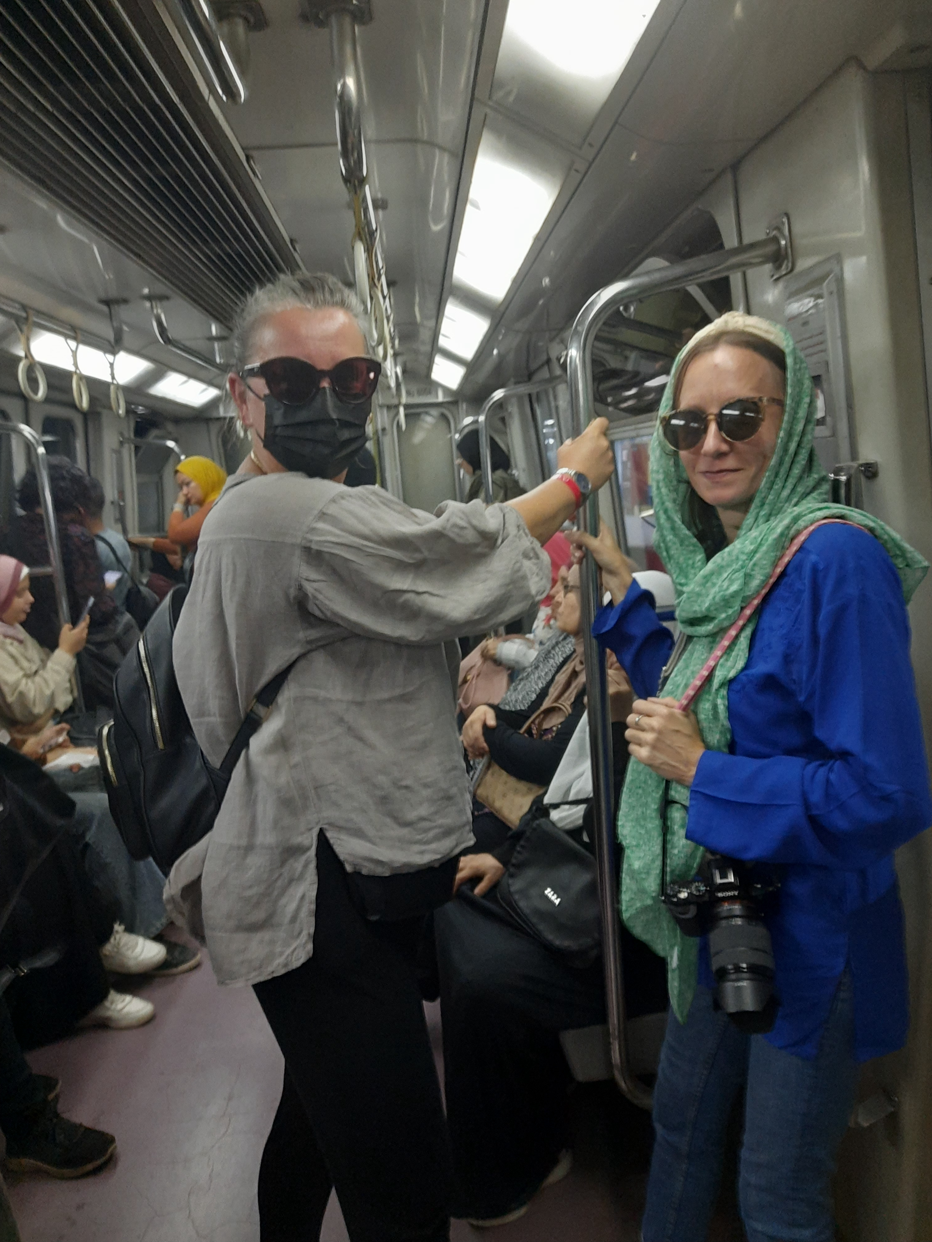We went to the metro station at Tahrir Square and from there to Giza. Already in the metro, we encountered a rather peculiar situation. Upon seeing us, a local woman ostentatiously covered her nose, suggesting that we smelled. Admittedly, we weren’t at our freshest after the long journey from Hurghada. But, nevertheless, we didn’t smell bad. However, that wasn’t the worst thing that happened to us. Finally, we got off at the “Giza” station and looked around for the direction to the pyramids. We initially went to the right, but a few people told us we were going the wrong way. A young man with his younger brother (around 12 years old) then approached us and said he was heading towards the pyramids and could show us the way. He mentioned that he was from Alexandria and, along with his younger brother, was going to Giza to show him the pyramids because he had never seen them. Grateful for his kindness, we went with him. Along the way, excitedly chatting with him, he suggested that we take a taxi and split the costs, making it more economical. Of course, we agreed. Interestingly, there were six of us in the car with the driver, and the little boy sat on his brother’s lap. During the journey, our companion Ahmed, as he introduced himself, presented us with a very interesting proposition for visiting the pyramids. Not in the crowded tourist areas but in a place for local people. We were thrilled with such an opportunity as we enjoy exploring non-touristy parts of the world. In the midst of conversations in the taxi, I casually remarked, “Girls, you know what we’re doing now is very risky; they could take us anywhere.” My words went unnoticed as we continued on, excited and enjoying the sights of Cairo. Ahmed further explained that we had to choose whether we wanted to explore the pyramids on horses or camels, which surprised us. We asked if it was possible to explore on foot, but he denied it, and we continued on.