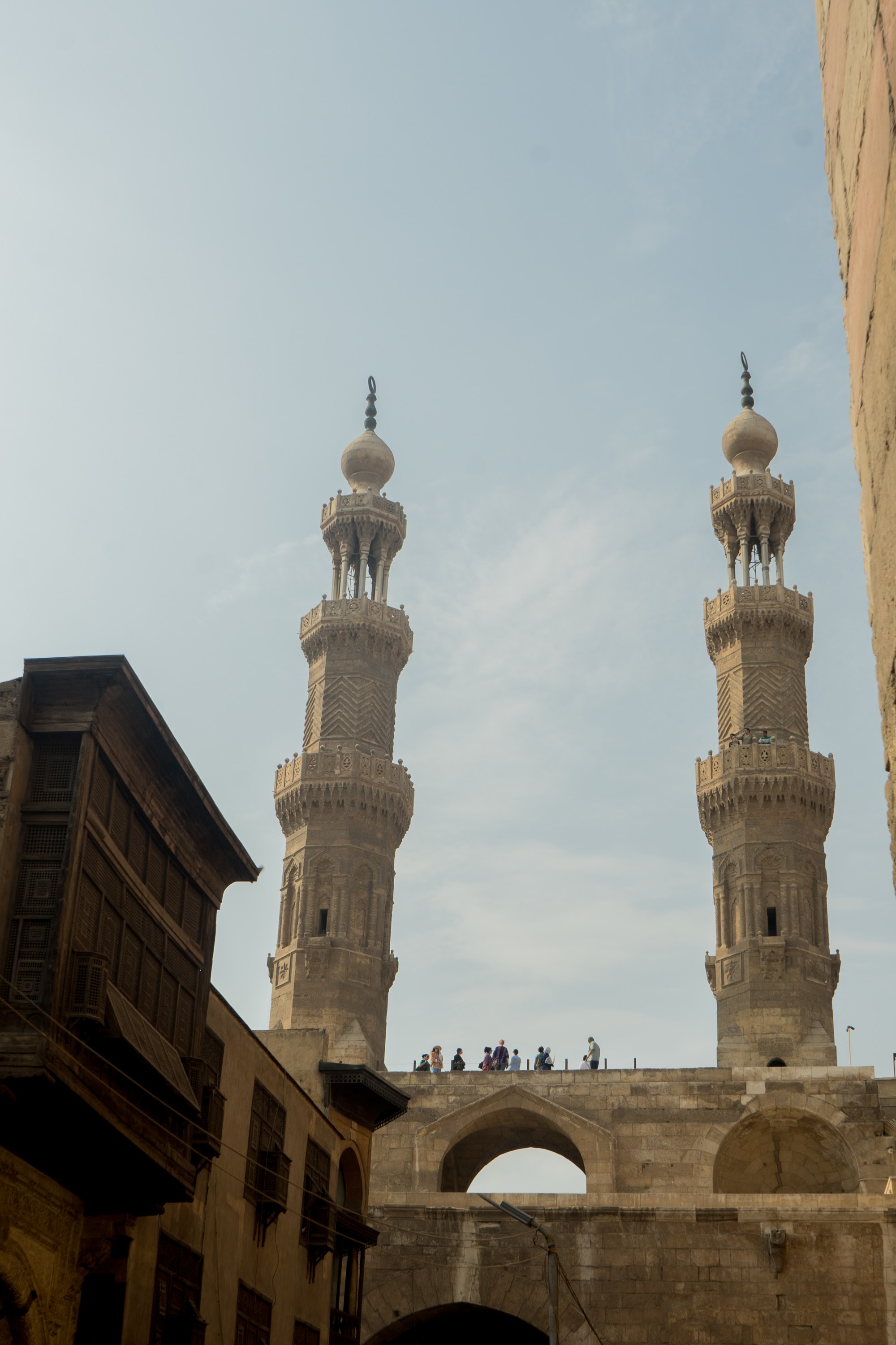 🌴 We continued on our way to the Bab Zuweila gate, looking curiously at the surrounding area. Bab Zuweila is one of the city gates in Cairo. It is a historic gate that was built in the 11th century during Fatimid rule. Bab Zuweila is one of the most important historical sites in Cairo and is a popular tourist spot. The gate once served a defensive function and was also the site of public executions in the past. Today, tourists are offered impressive views of the old part of the city.