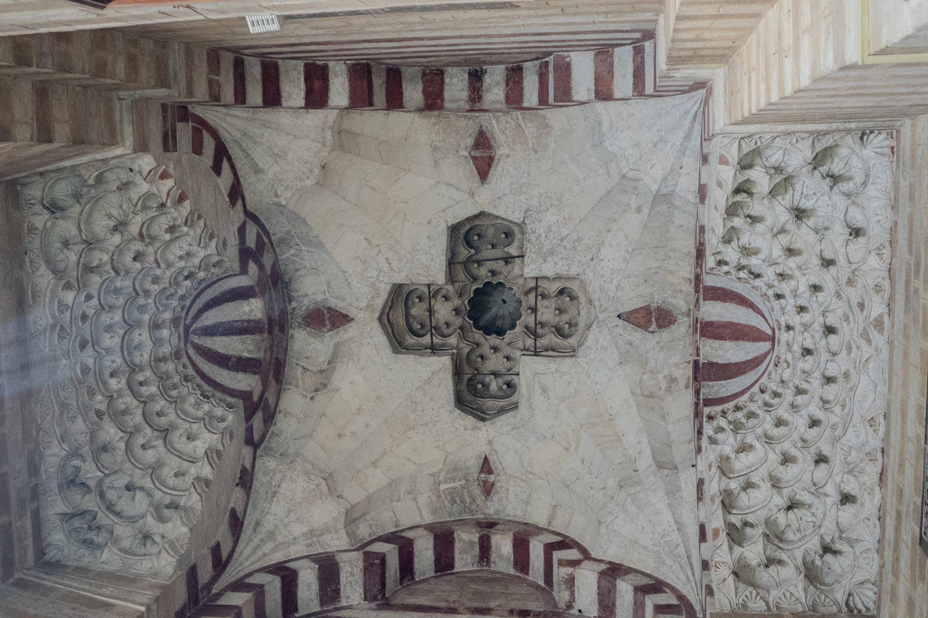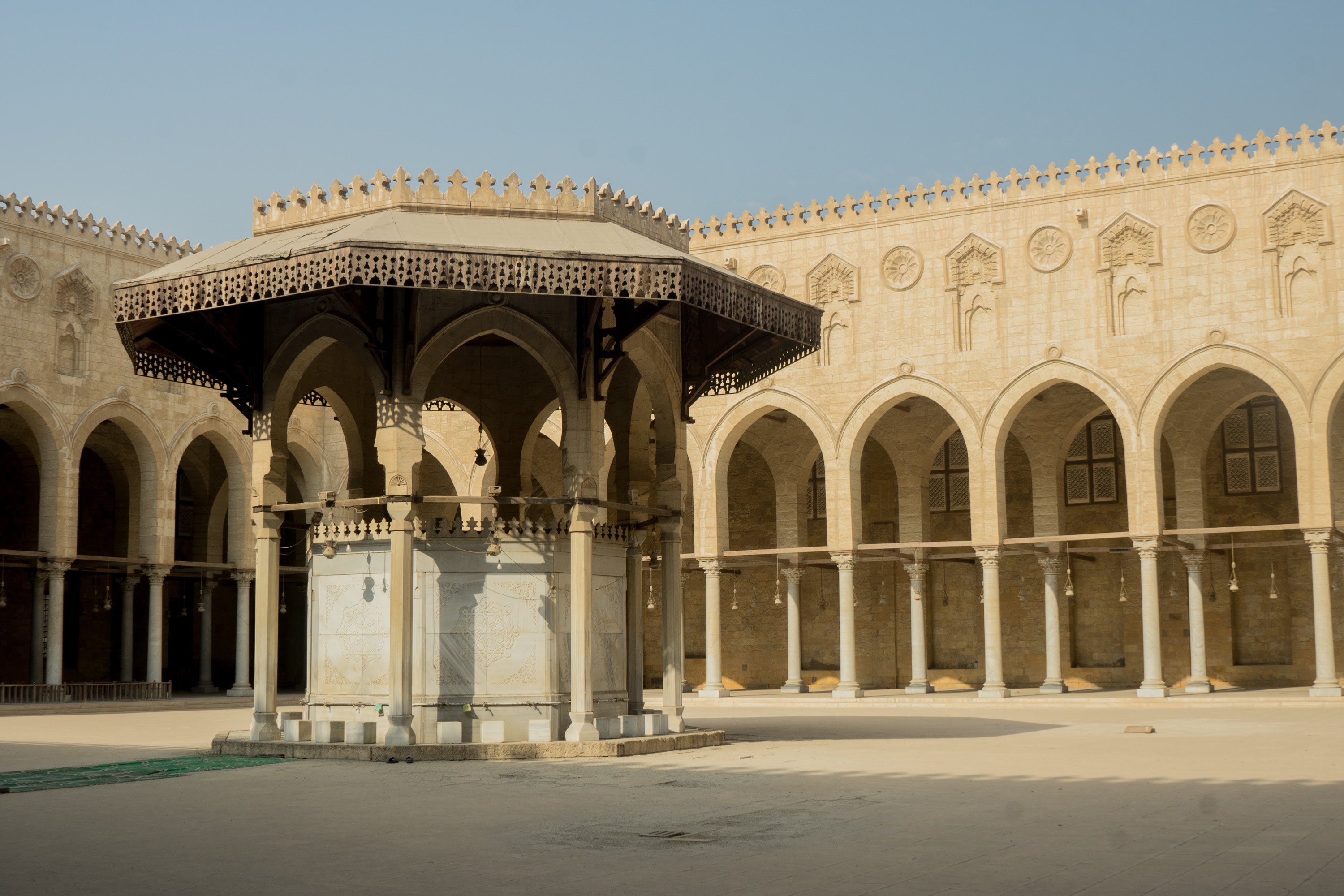 🕌 Near the Gate was located the Mosque of Sultan al-Muayyad Shaykh. And, of course, we did not miss it. However, there was one BUT. We didn’t know where the entrance was. And after our experience in Giza, we were skeptical about asking for help. However, after a brief look around, there was a lady in sight who was returning home with her shopping, and it was she whom we asked for directions. It was difficult at first, because the lady did not speak English, we spoke Arabic even less. We did not give up! The translator from Uncle GOOGLE did a great job and we communicated without a hitch. The lady practically led us by the hand to the entrance, she didn’t want anything from us and bestowed on us extraordinary cordiality and a beautiful smile. I have been to several mosques in Turkey so far and the one visited in Downtown Cairo was different. First, the architecture of the mosque was different, having unique decorations, more focused on geometric patterns, and an open prayer space. Entrance to the mosque was free, and a fee of EGP 20 was charged at the entrance to the minarets. Yes, you could see the panorama of the old city there, and it was out of this world.