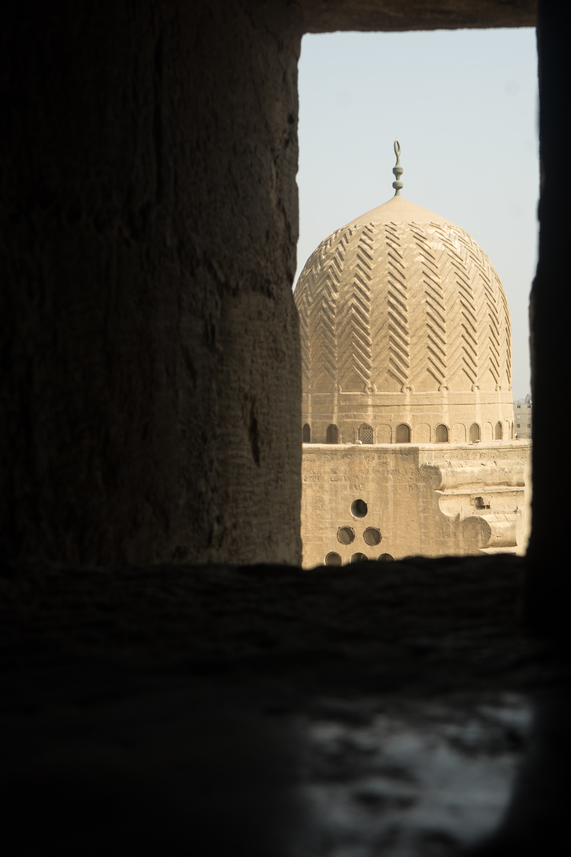 🕌 W pobliżu Bramy zlokalizowany był Mosque of Sultan al-Muayyad Shaykh. I oczywiście nie omieszkałyśmy go pominąć. Było jednak jedno ALE. Nie wiedziałyśmy, gdzie jest wejście. A po doświadczeniach w Gizie byłyśmy sceptycznie nastawione do proszenia o pomoc. Jednak po krótszym rozejrzeniu się w zasięgu wzroku była pani, która wracała z zakupami do domu i to właśnie ją zapytałyśmy o drogę. Na początku było trudno, bo pani nie mówiła po angielsku, my po arabsku tym bardziej. Nie poddałyśmy się! Translator od wujka GOOGLE spisał się na medal i porozumiałyśmy się bez przeszkód. Pani praktycznie za rękę zaprowadziła nas pod wejście, nic od nas nie chciała i obdarzyła nas niezwykłą serdecznością i pięknym uśmiechem. Dotychczas byłam w kilku meczetach w Turcji i ten odwiedzony w Downtown Cairo różnił się od nich. Po pierwsze architektura meczetu była odmienna, posiadając unikalne zdobienia, bardziej skoncentrowane na geometrycznych wzorach oraz otwartą przestrzeń modlitewną. Wejście do meczetu było bezpłatne, a opłata w wysokości 20 EGP pobierana była przy wejściu na minarety. Tak! Można było tam zobaczyć panoramę na stare miasto, a ta była nie z tej ziemi.
