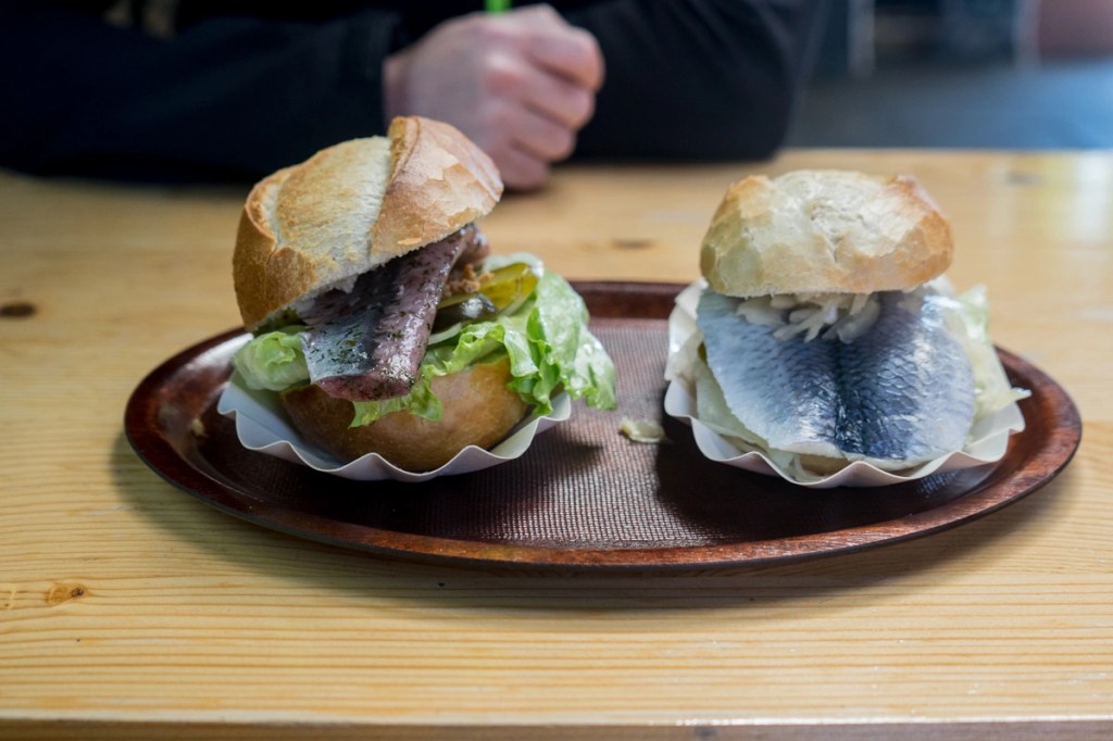🚗 Our first stop was Stralsund, where we couldn’t resist trying a local delicacy – fishbrötchen. This popular German dish consists of a bun filled with fried or pickled fish (usually herring, cod, or flounder), fresh vegetables like lettuce, onion, and cucumber, and a sauce, which can be mayonnaise or mustard-based. This tasty snack cost 5 euros. Strolling through the city, we admired the Old Market with its impressive Town Hall and the Oceanarium, showcasing the rich marine life of the Baltic Sea. A walk along the marina, with the wind in our hair, completed our day.